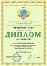 Международная выставка ПродЭкспо-2004Международный конкурс"Лучший продукт-2004" на 11-ой международной ярмарке продовольственных товаров и сырья для их производства «ПРОДЭКСПО-2004» 9-13 февраля 2004г. |